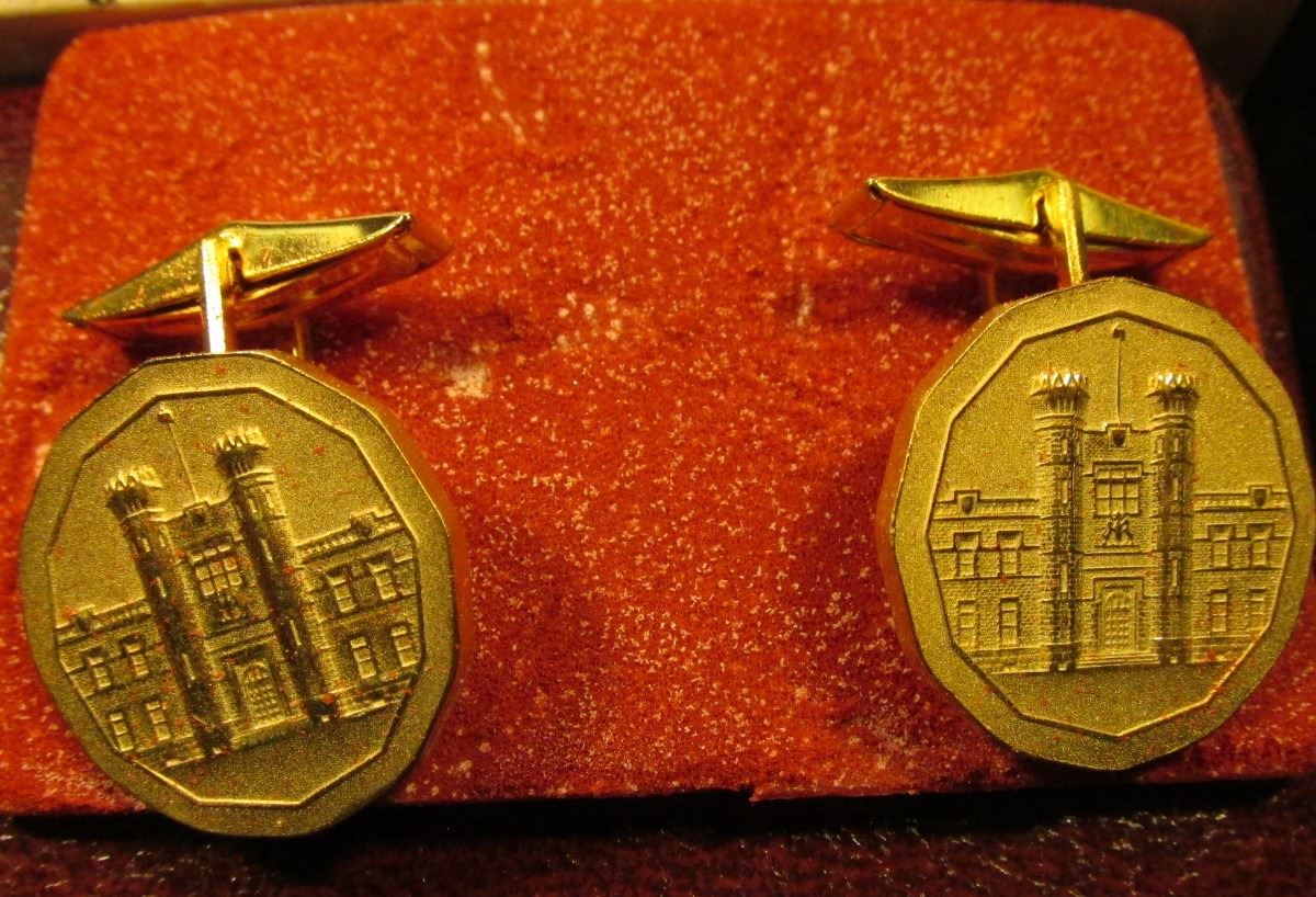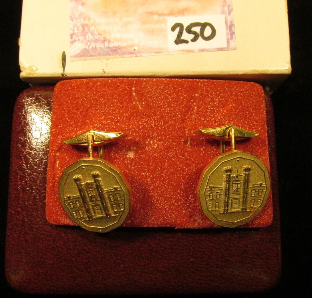 Pair of Gold-plated Cuff Links depicting the Royal Canadian Mint. In original box of issue.