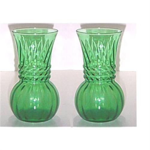 <tr><td>Title:Pair of Green Depression Glass Vases </td></tr>