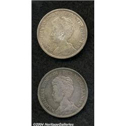 <B>Pair of Guldens,</B></I> KM148 1911 and 1916, both VF. 2 coins <BR><BR><B>Important notice:</B> Heritage usually auctions material at the rate of 200-250 lots per hour. On some occasions eBay Live bid software or the Internet may not be able to keep up with the pace of the auction. We recommend placing a realistic absentee bid now as insurance to avoid disappointment. Occasionally the auctioneer may eliminate or reject an eBay Live bid, and the auctioneer may also reopen a lot after the close of the eBay live bidding (usually because we missed an audience bid), and may reject your bid even if it shows you as the winning bidder. By bidding via eBay Live, you agree that Heritage may award the lot to another bidder at its sole discretion under the circumstances described above or any other reasonable circumstances. Since eBay bids are not shown to us until we open the lot on the floor, we treat those bids just like floor bids. In most cases the floor responds before the eBay bid is presented to us, due to Internet lag time, so for consistency we have made it a policy that floor bids are always considered first over tie eBay live bids. Also please note that all Heritage lots purchased through eBay Live carry a 20% Buyer's Premium. Please make sure you read the Terms and Conditions before you bid.