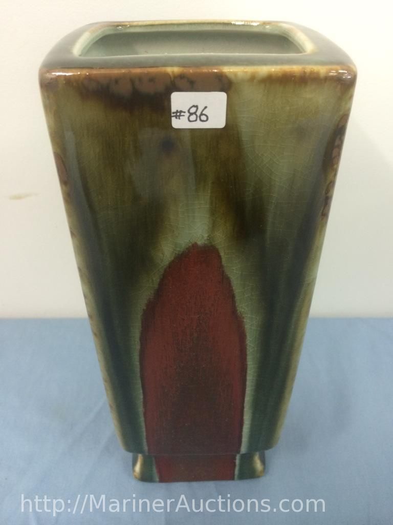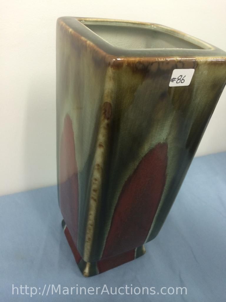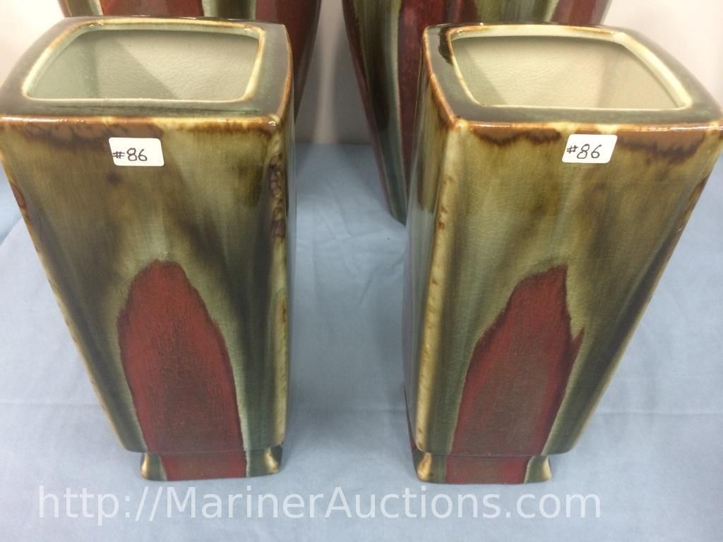 Pair of Hand Crafted Square Pottery Vases (10" high)