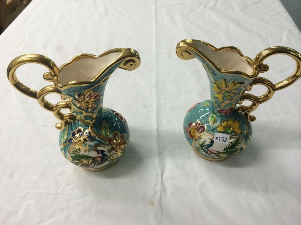 Pair of Hand Painted Porcelain Pitchers (7" high)