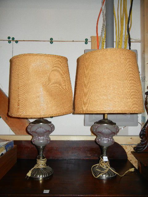 Pair of Hand Painted Vintage Lamps w/ Red Design