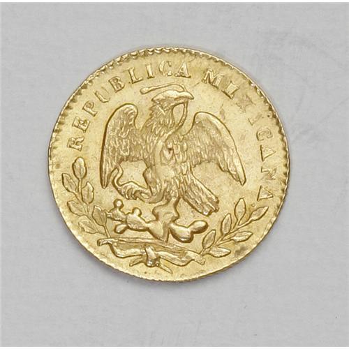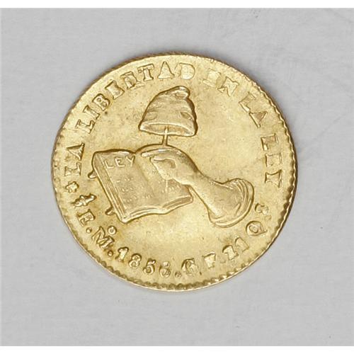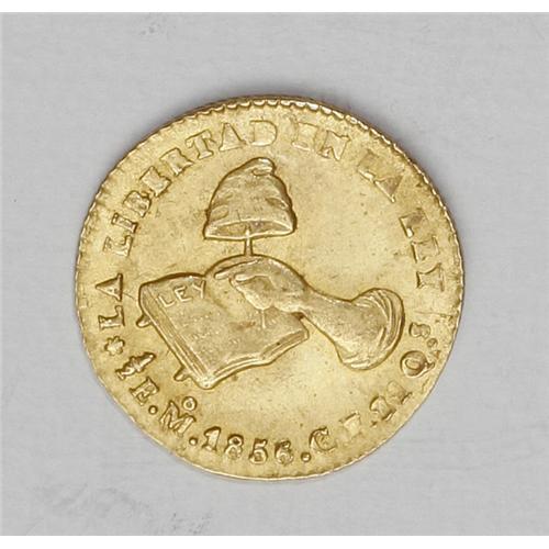 <B>Pair of Hand on Book gold Half Escudos 1856/4-Mo GF,</B></I> KM-378.5, both satiny Uncirculated and really pleasing.<BR><BR><b>Shipping:</b> Coin/Currency (<a target="_blank" href="http://www.heritageauctions.com/common/shipping.php">view shipping information</a>)