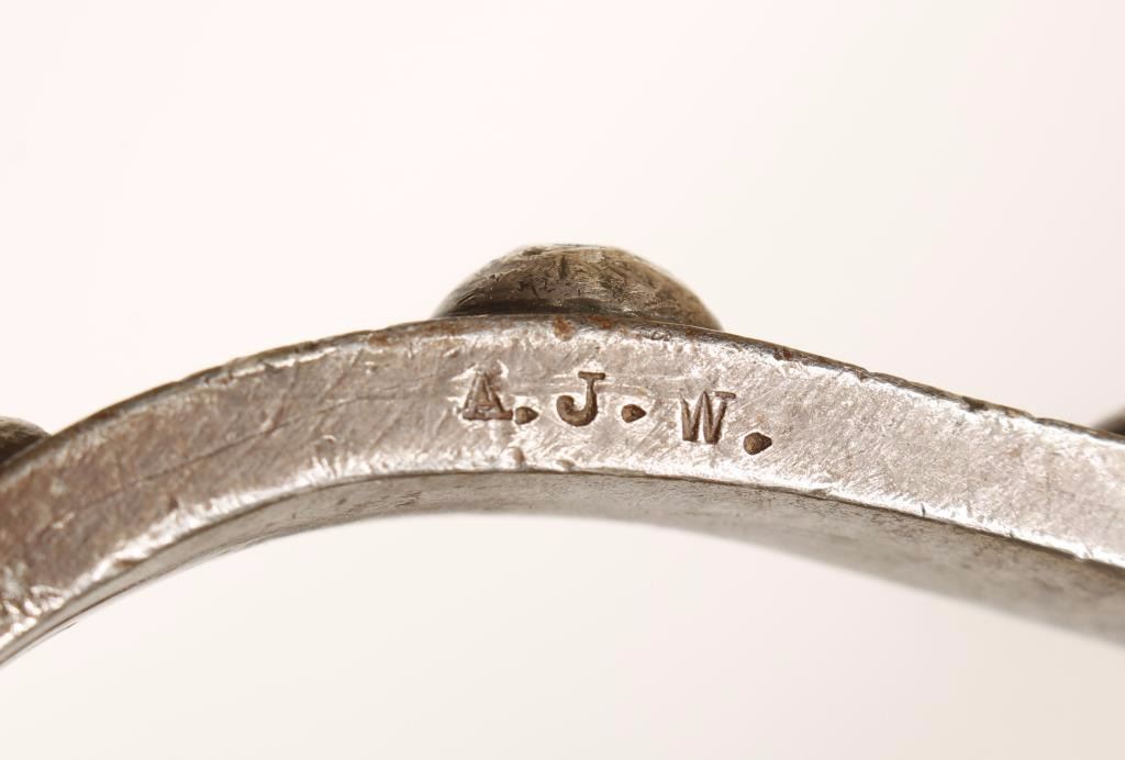 in a Wyoming style, split heel bands, 3 domes on each side, double mounted, marked 'A.J.W.'