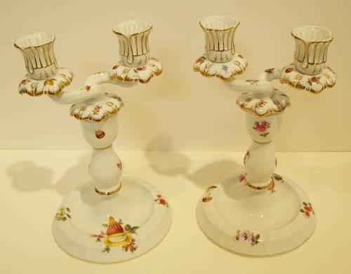 Title: Pair of Handpainted Herend Porcelain Candlesticks
