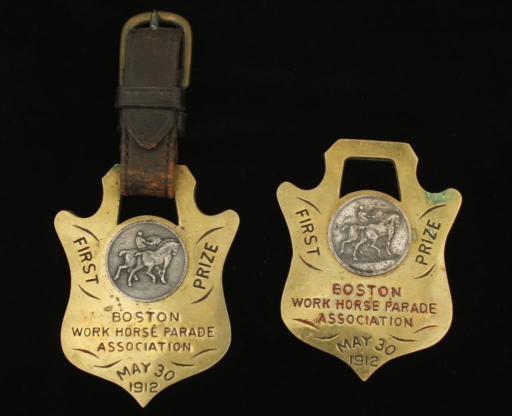 Given as first prize on May 30, 1912 by the Boston Work Horse Parade Association. With silver medallion in center.