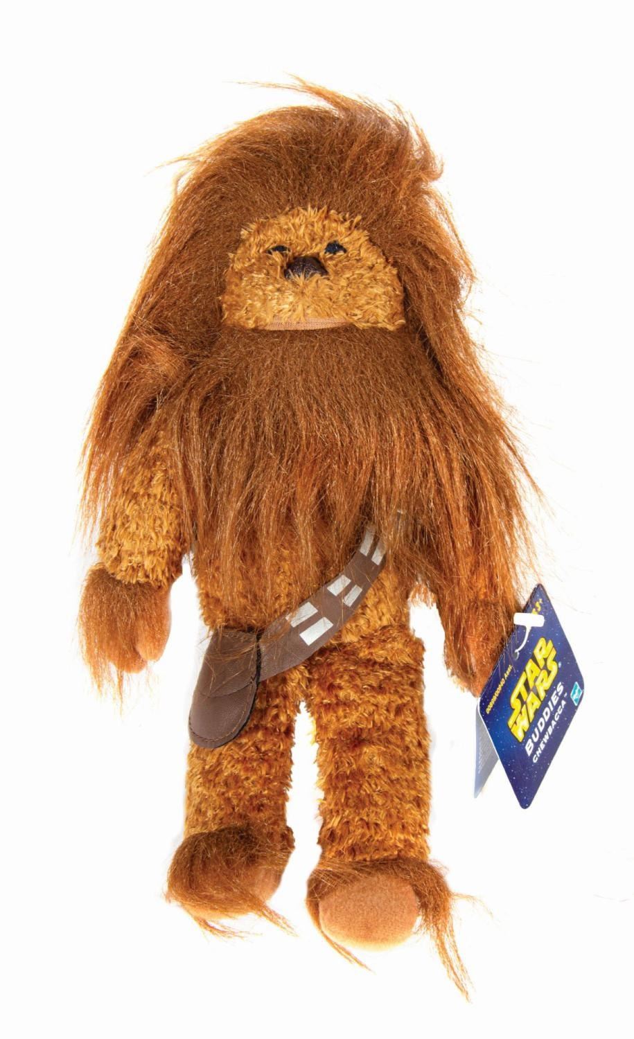 (Hasbro, 2004) A pair of prototype Chewbacca Buddies from the Hasbro Star Wars line, from the collection of a former Hasbro employee. Originally envisioned as a product for younger kids under the Playskool label, these plush dolls went through various branding revisions before they were finally released as "Battle Buddies." Included here are an early color test Chewbacca with darker features and test "Disney's Leopard Lovin' Stanley" product and UPC tags, and a final color scheme Chewie with a sample hangtag identifying the product as a "Star Wars Buddy" rather than a "Star Wars Battle Buddy," though still featuring the correct final UPC code. Measuring 10" tall, the dolls are in fine condition with a handling crease to the hangtag.
