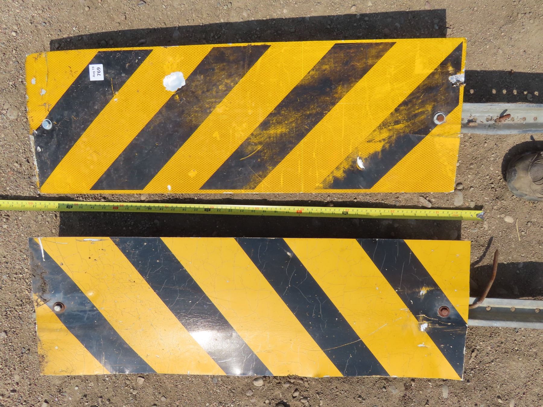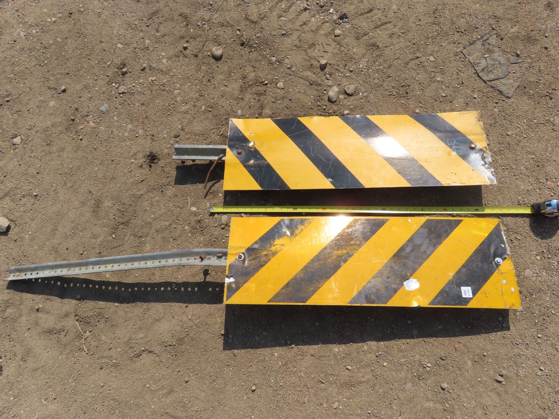 Pair of "Hazard" directional road side sign