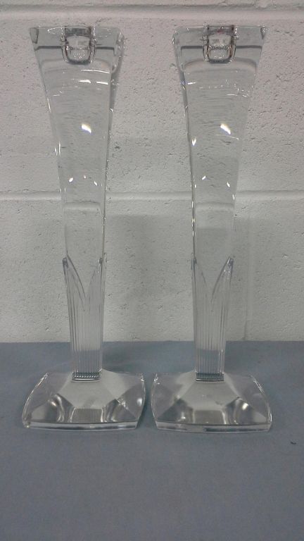 Pair of Heavy Crystal Designer Candle Holders (12" high)