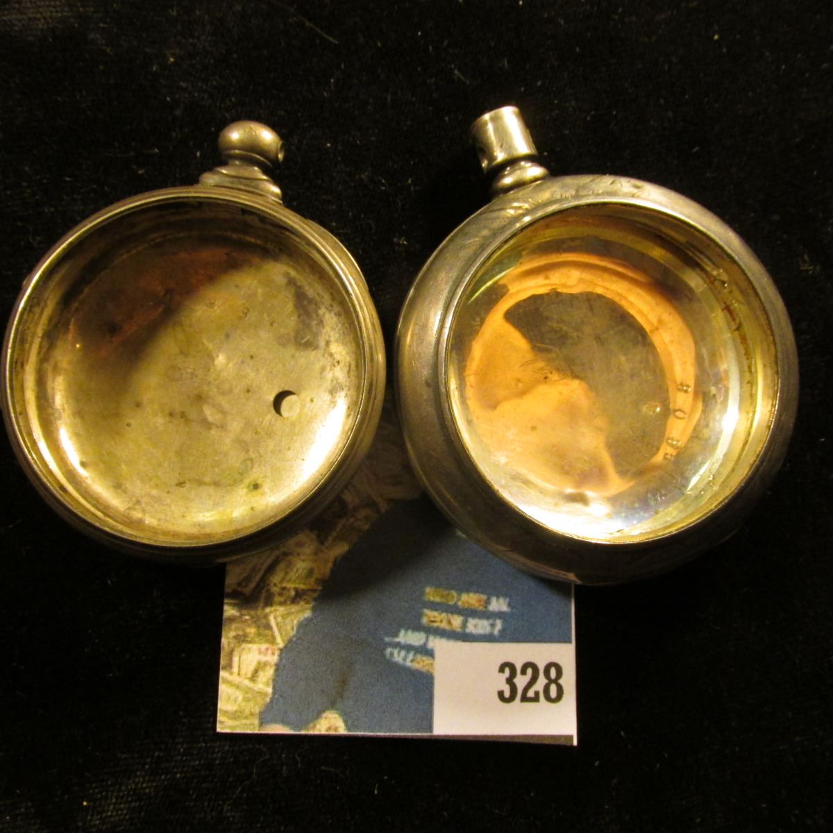 Pair of Heavy Men's Pocket Watch Cases, no works. One is labeled "Coin Silver" & I believe the keywi