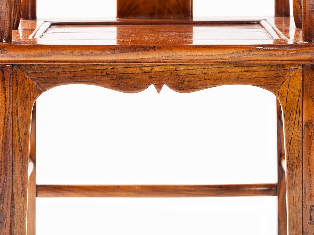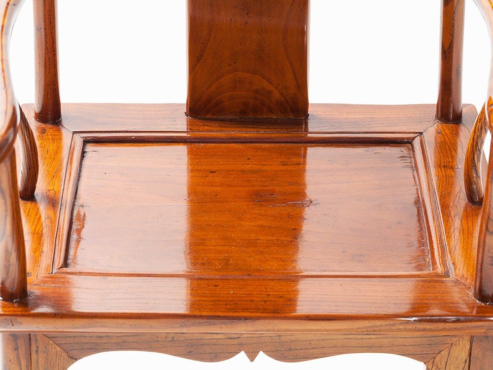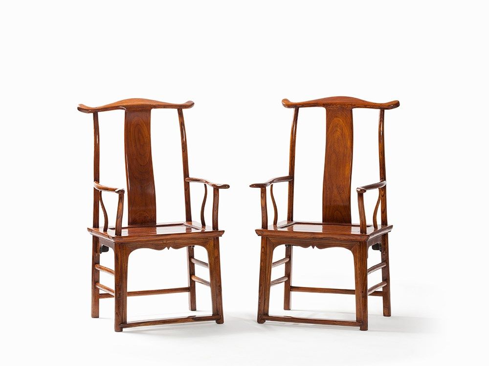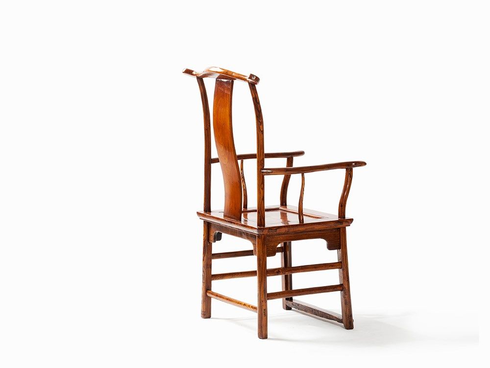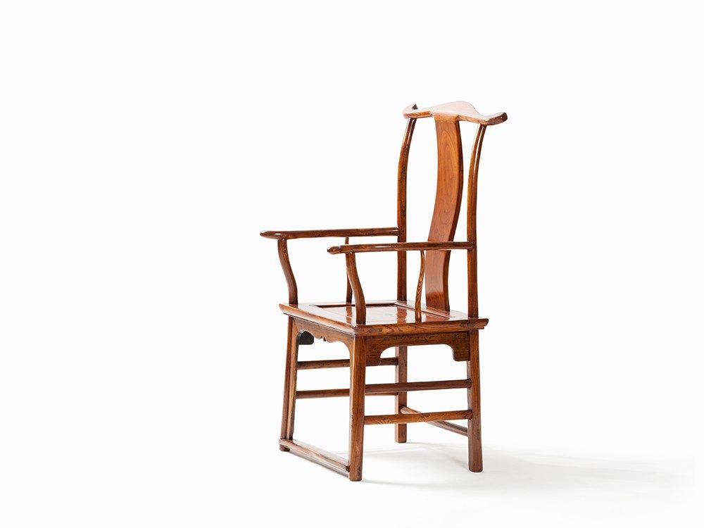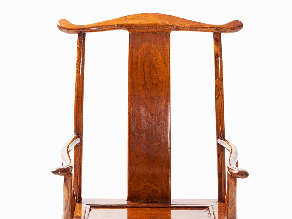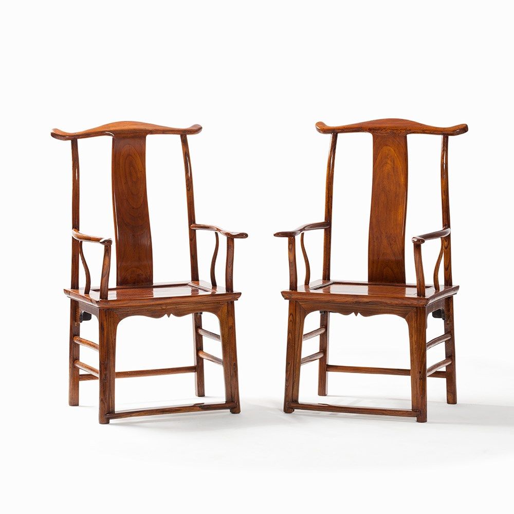 Traditionally yokeback armchairs (Sichutouguanmaoyi), also known as ‘official's hat armchairs’ in China, were reserved for distinguished guests or family members of the highest rank. The s-shaped backrest forces the sitter to sit straight, naturally imparting an air of power and importance.