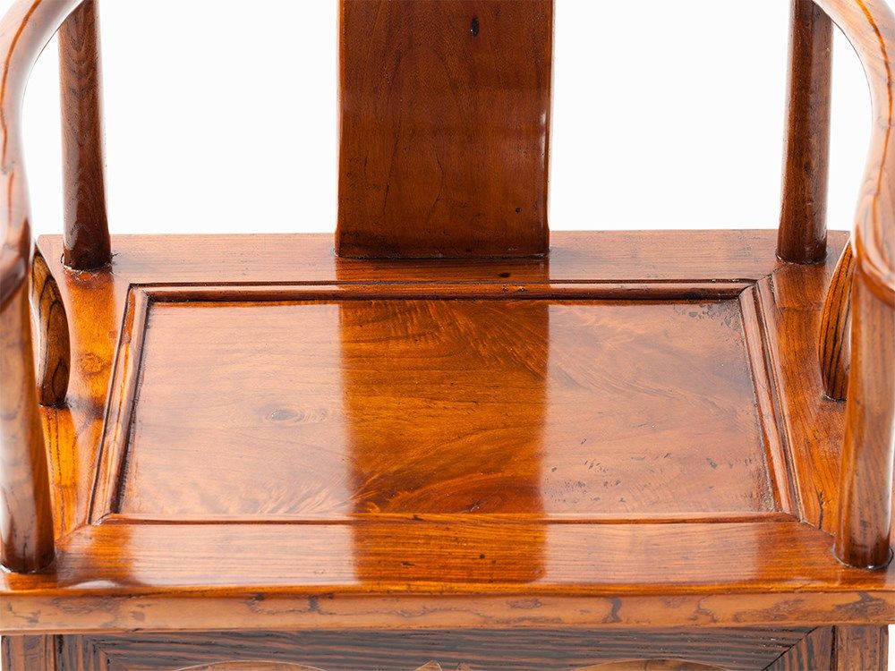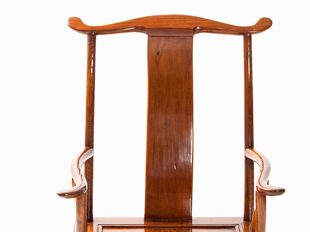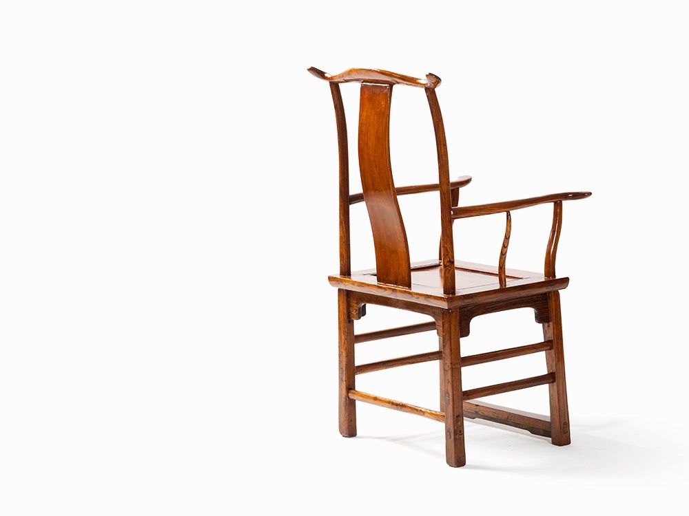 Traditionally yokeback armchairs (Sichutouguanmaoyi), also known as ‘official's hat armchairs’ in China, were reserved for distinguished guests or family members of the highest rank. The s-shaped backrest forces the sitter to sit straight, naturally imparting an air of power and importance.