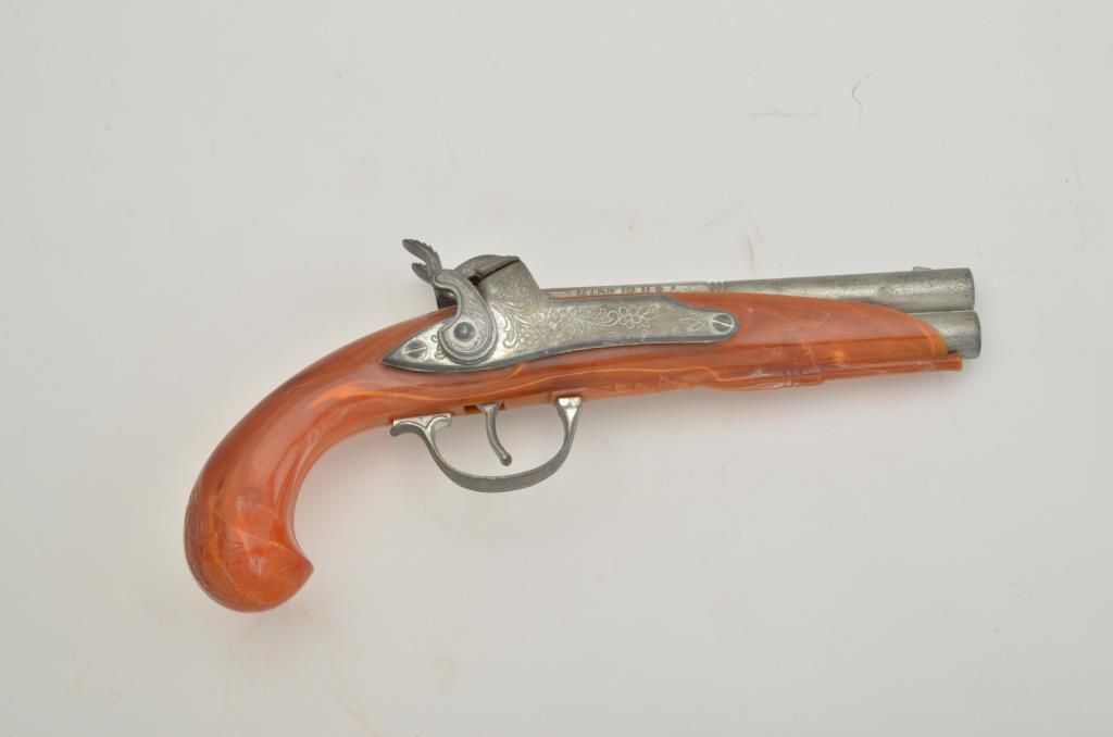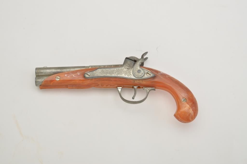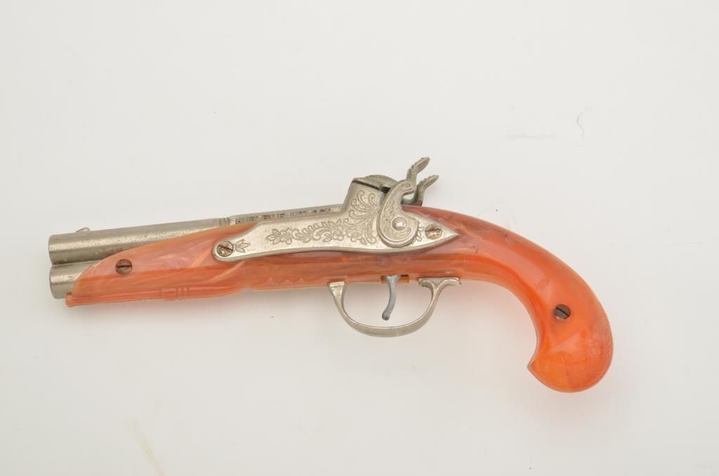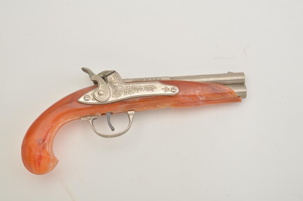 Pair of Hubley metal and plastic double hammer cap pistols in very good condition, each approx. 9-1/2” overall Est.: $75-$150.