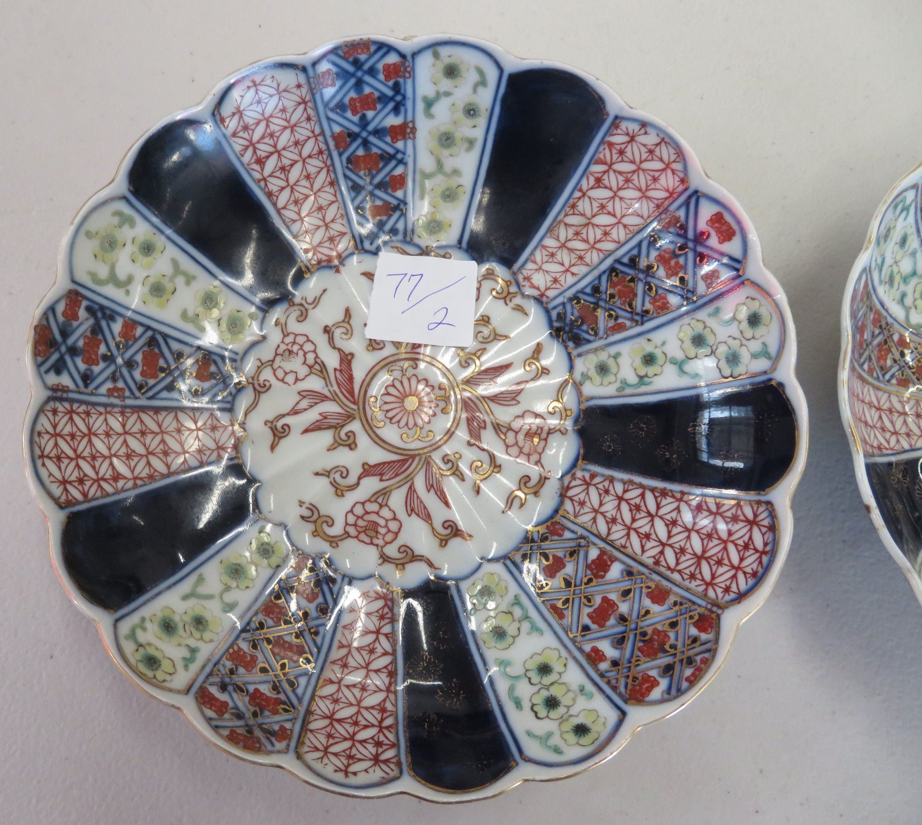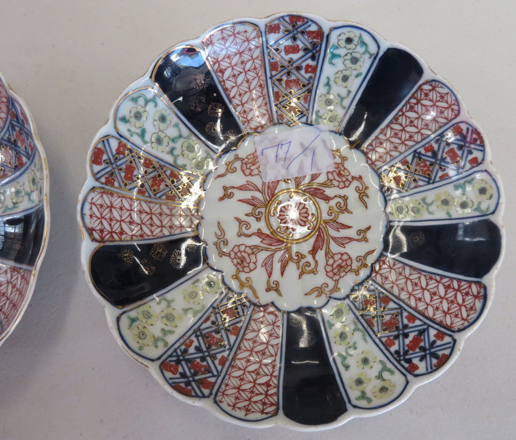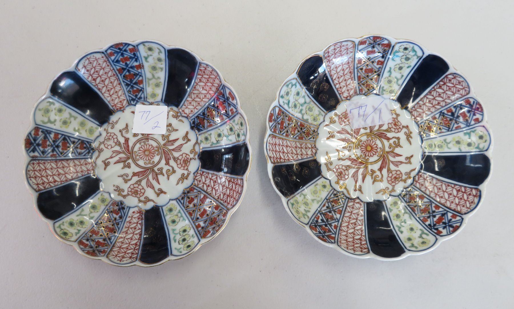 Pair of Imari Bowls, antique items. Made of porcelain, the bowls measure 7" x 2". Japan. Condition: Good, see images. Shipping: $35.50 w/insurance and signature, double-boxed.