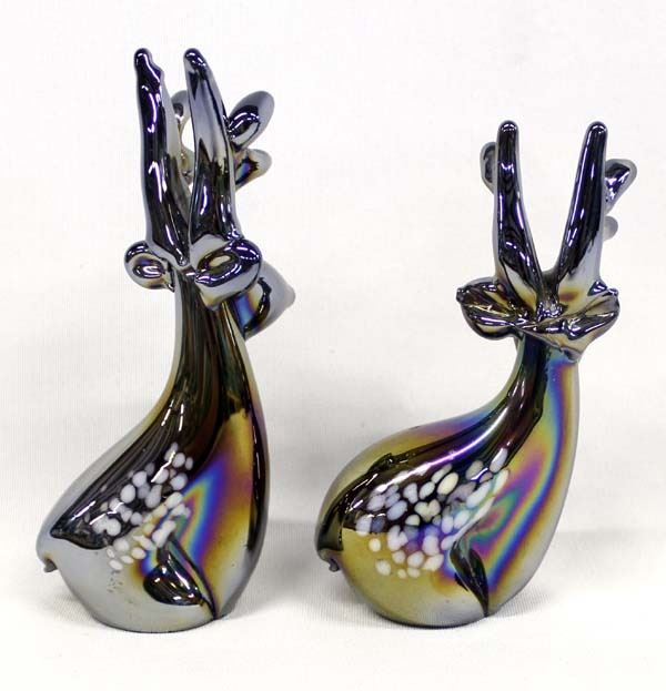 Pair of Iridescent Blue Deer, white spots, measure 5'' x 2''