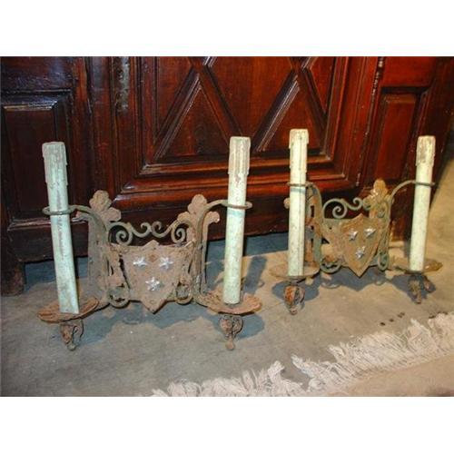 <tr><td>Title:Pair of Iron Shield Sconces-Parcel Verdegres</td></tr>