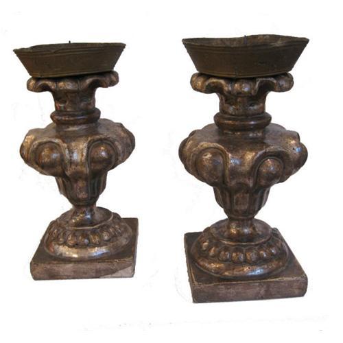 A beautiful pair of silver leafed Italian 'torchieres' (candlesticks).</em></td>