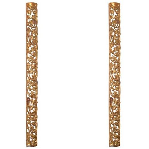 Pair of Italian (probably Tuscan) Rococo period giltwood and painted half-round pilasters, beautifully carved as entertwining fruited grapevines.