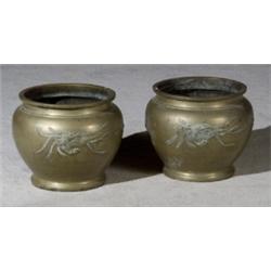 Pair of Japanese Sentoku JardiniFres, Meiji Period (1868-1912), Each cast in high relief with...