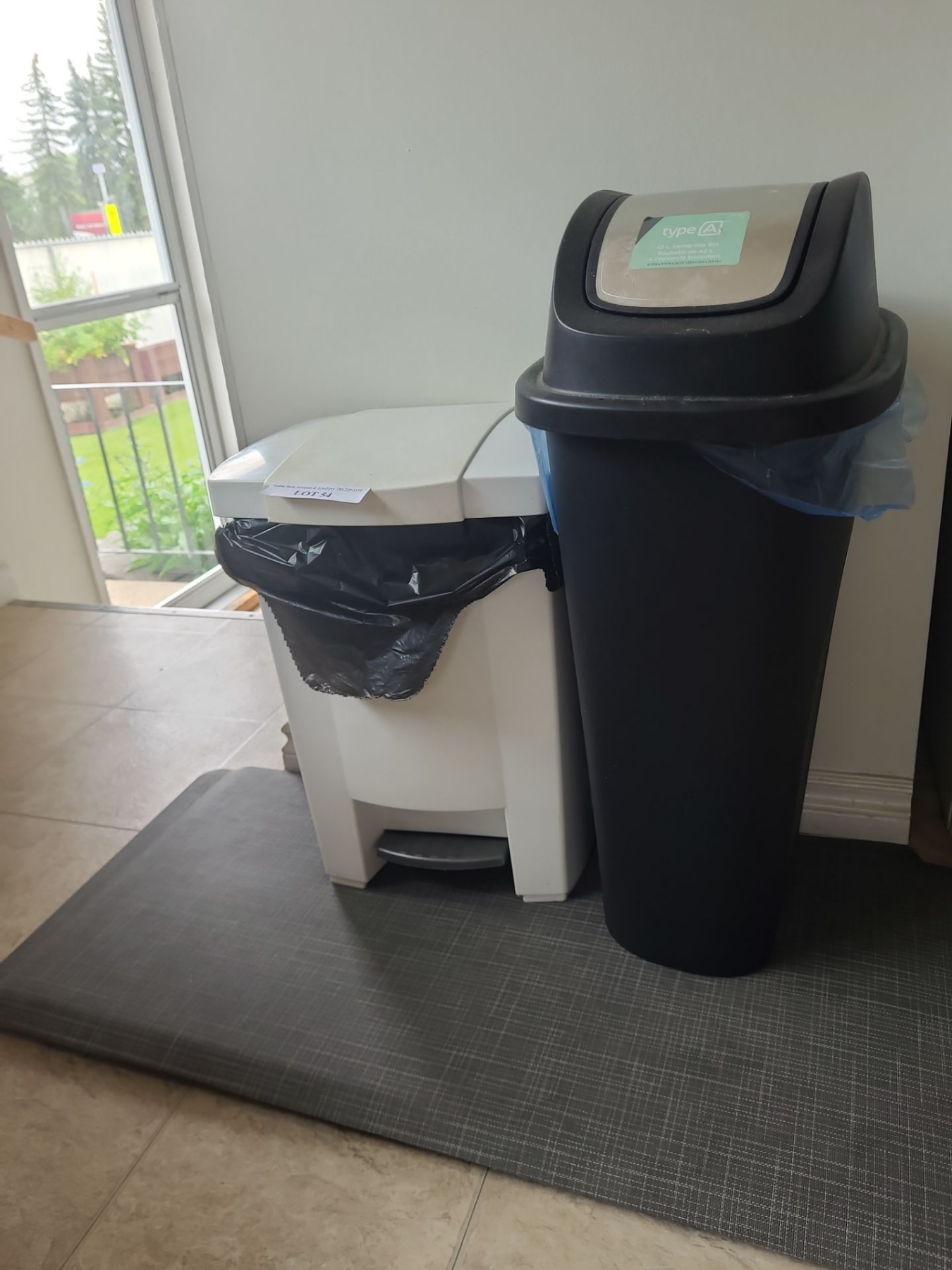 Pair of Kitchen Garbage Cans & 2 Anti-Fatigue Mats