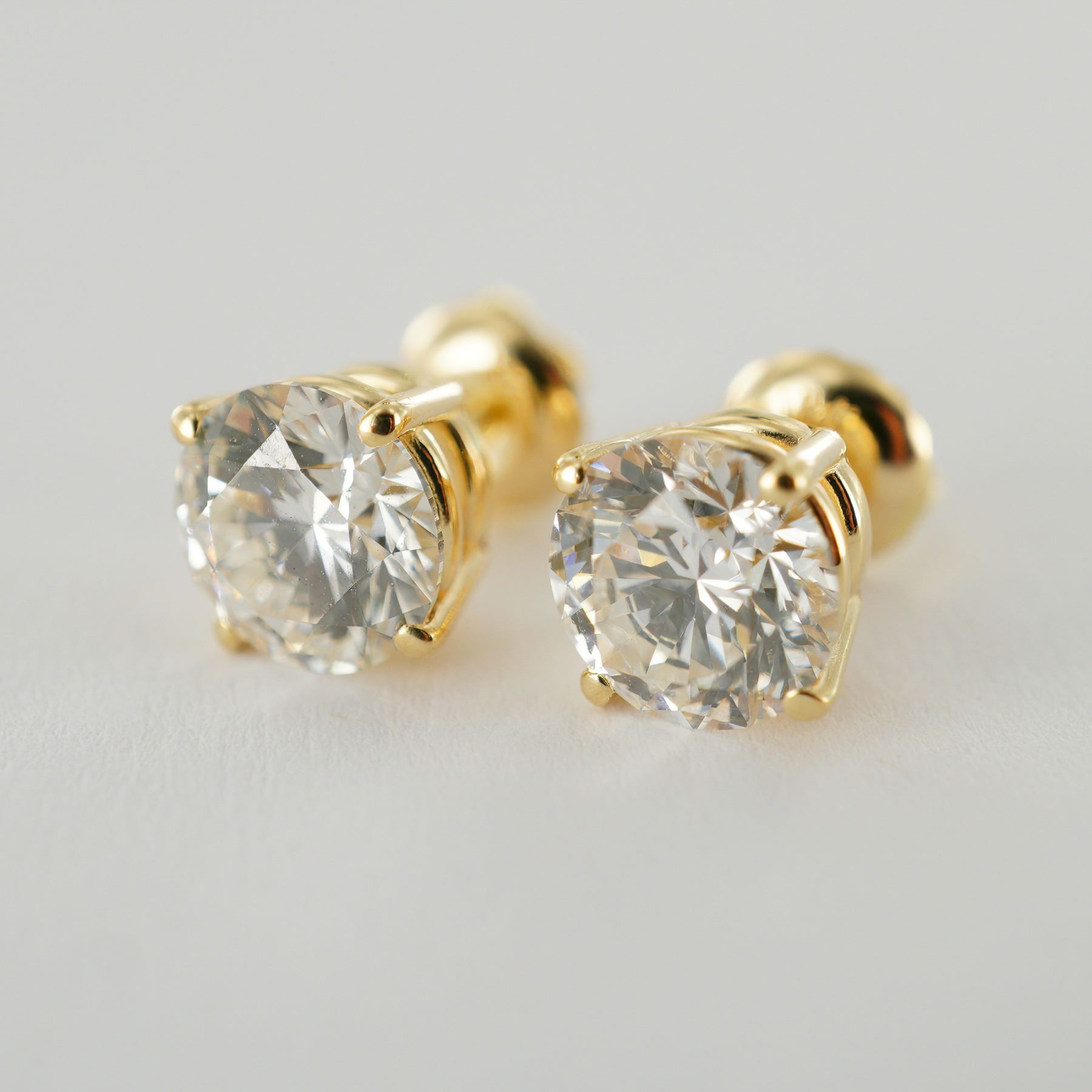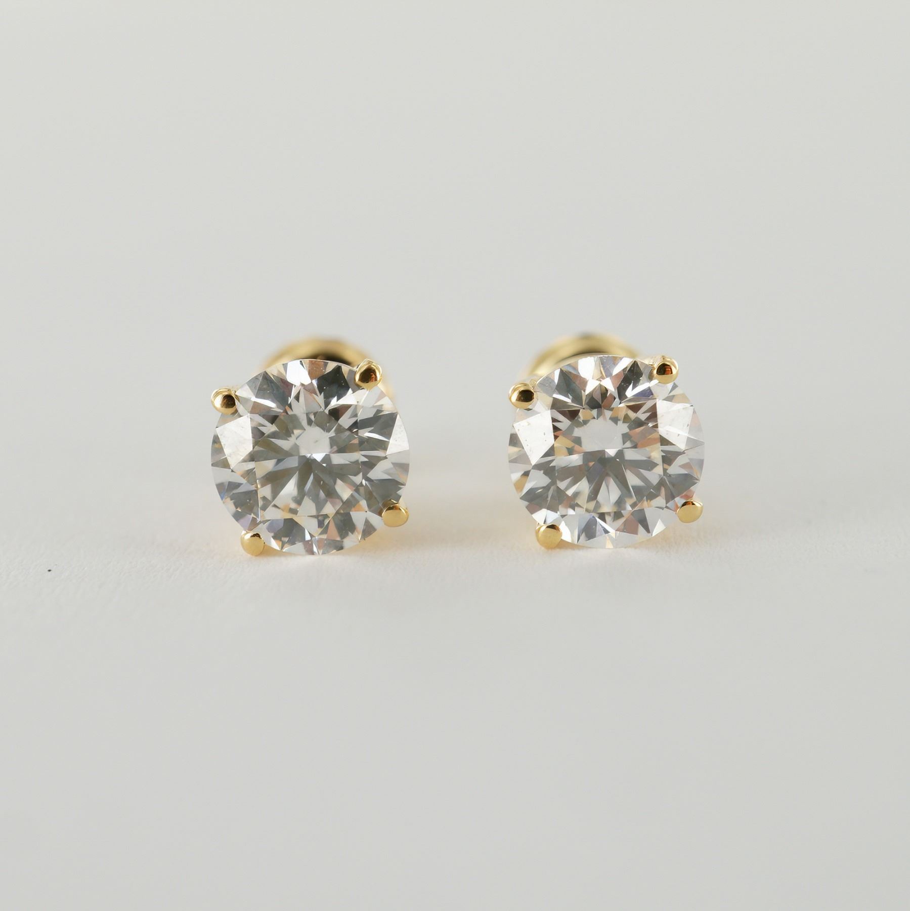 Pair of Lab-Grown Diamond Stud Earrings, 2.10 TCW in 14K Yellow Gold