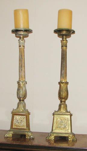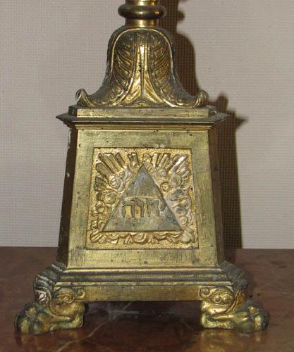 Pair of Large Brass Candlesticks with Hebrew inscription