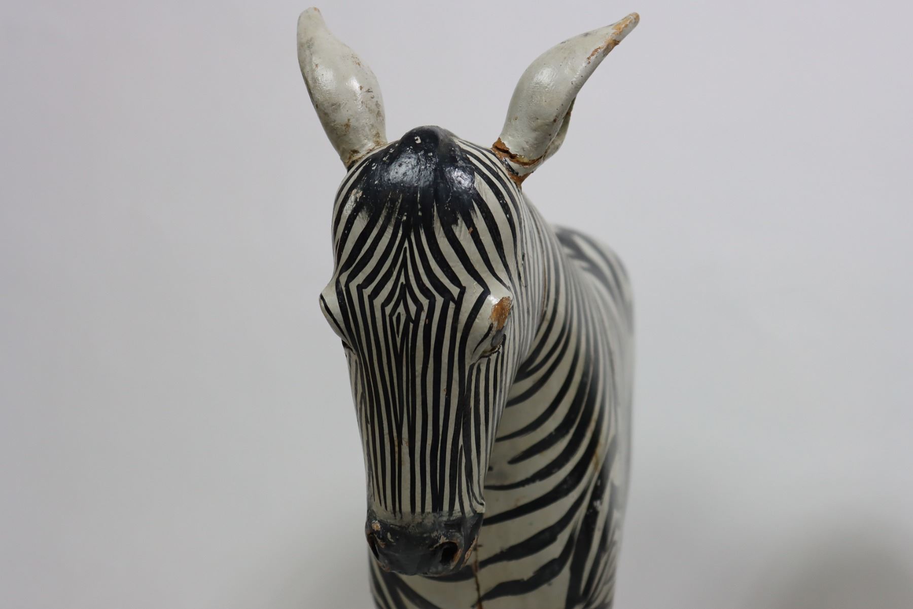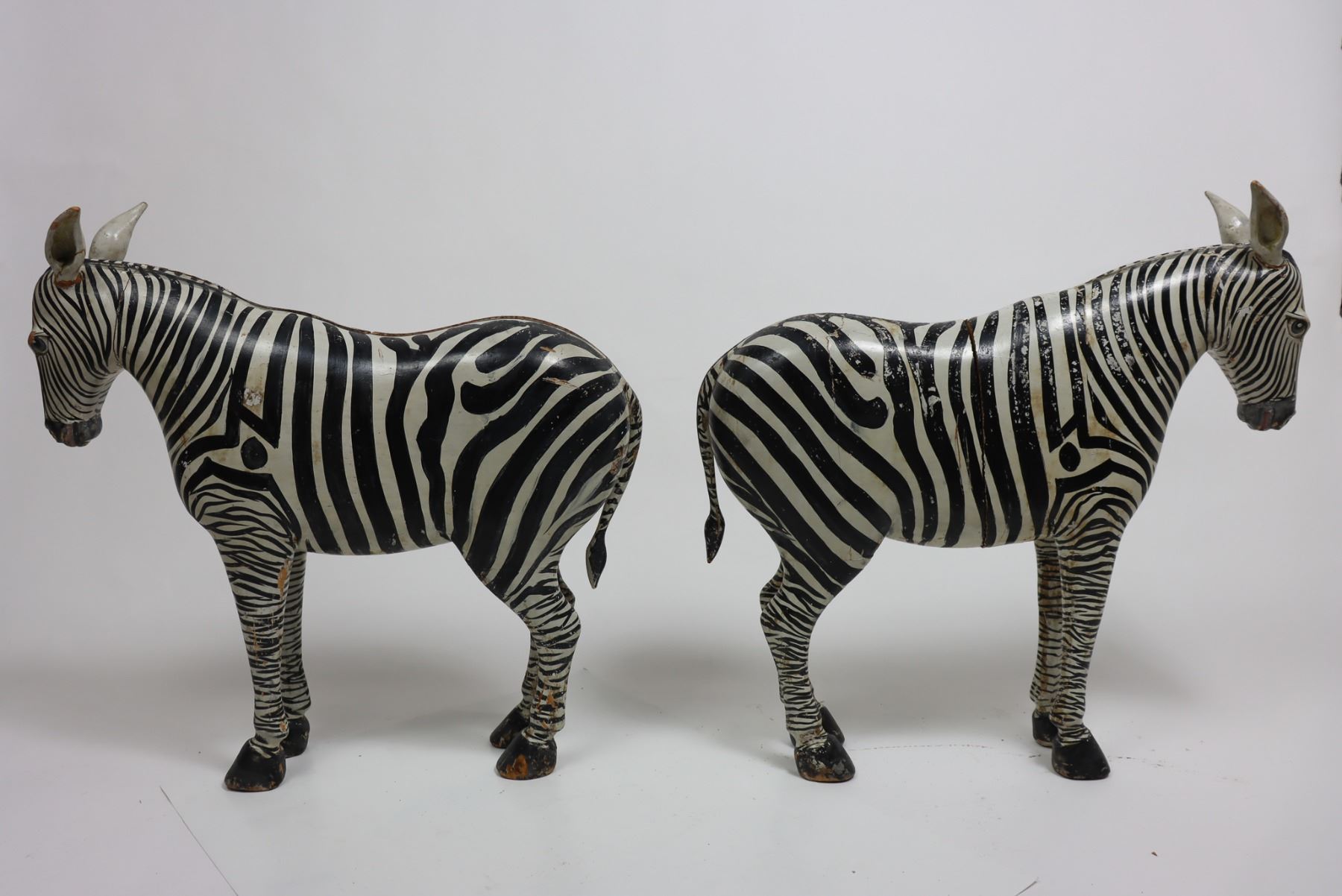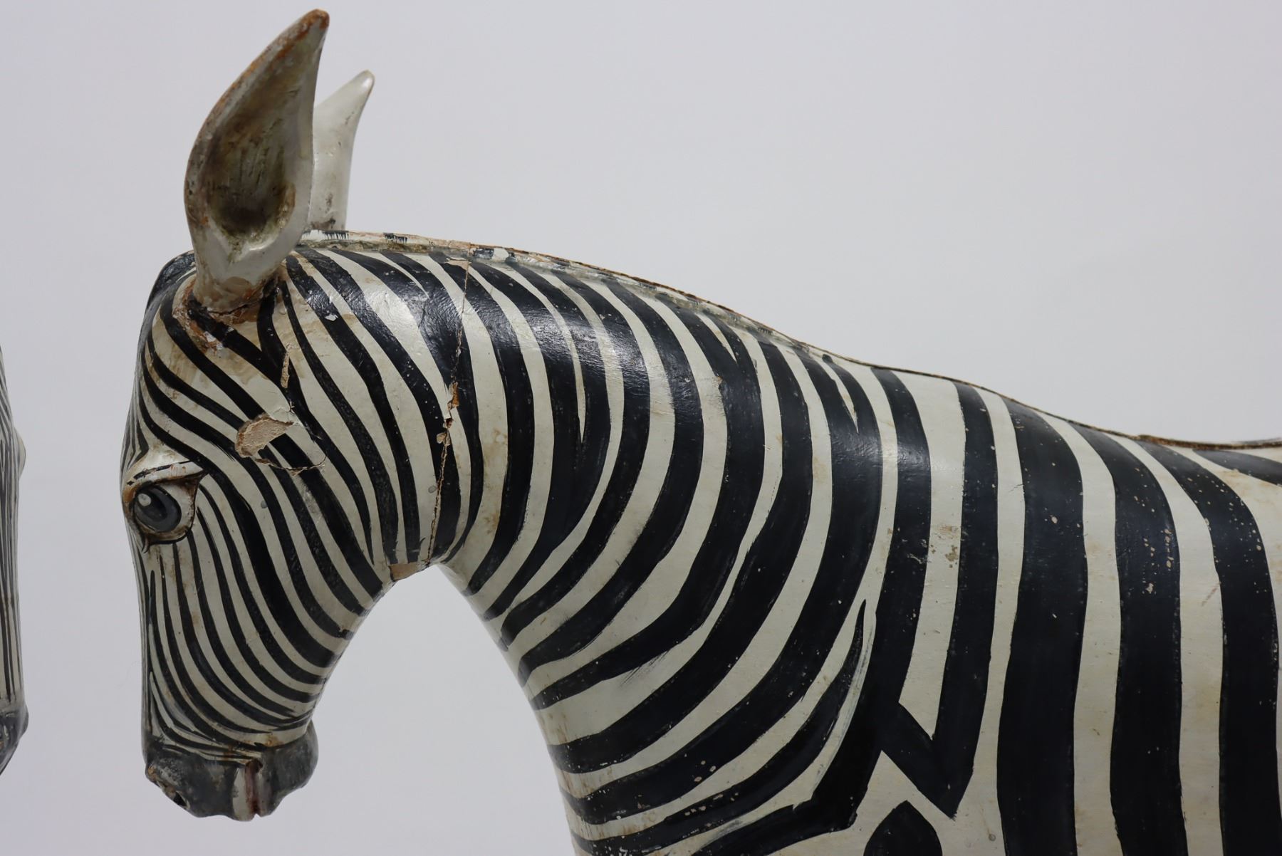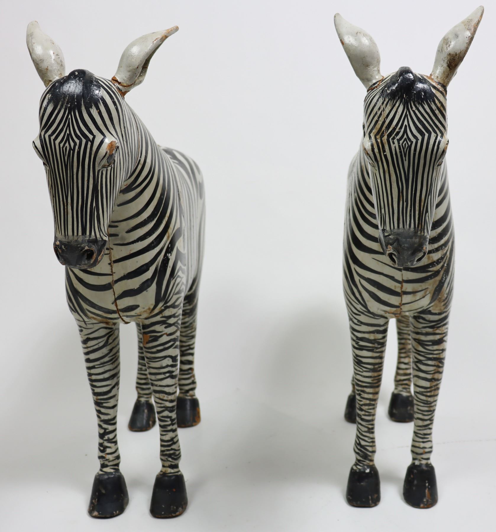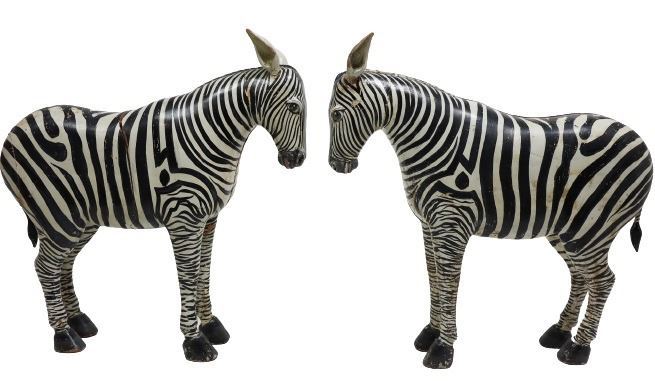 Large carved zebra figures. As is. Size: 24 x 25 1/2 x 6 in.