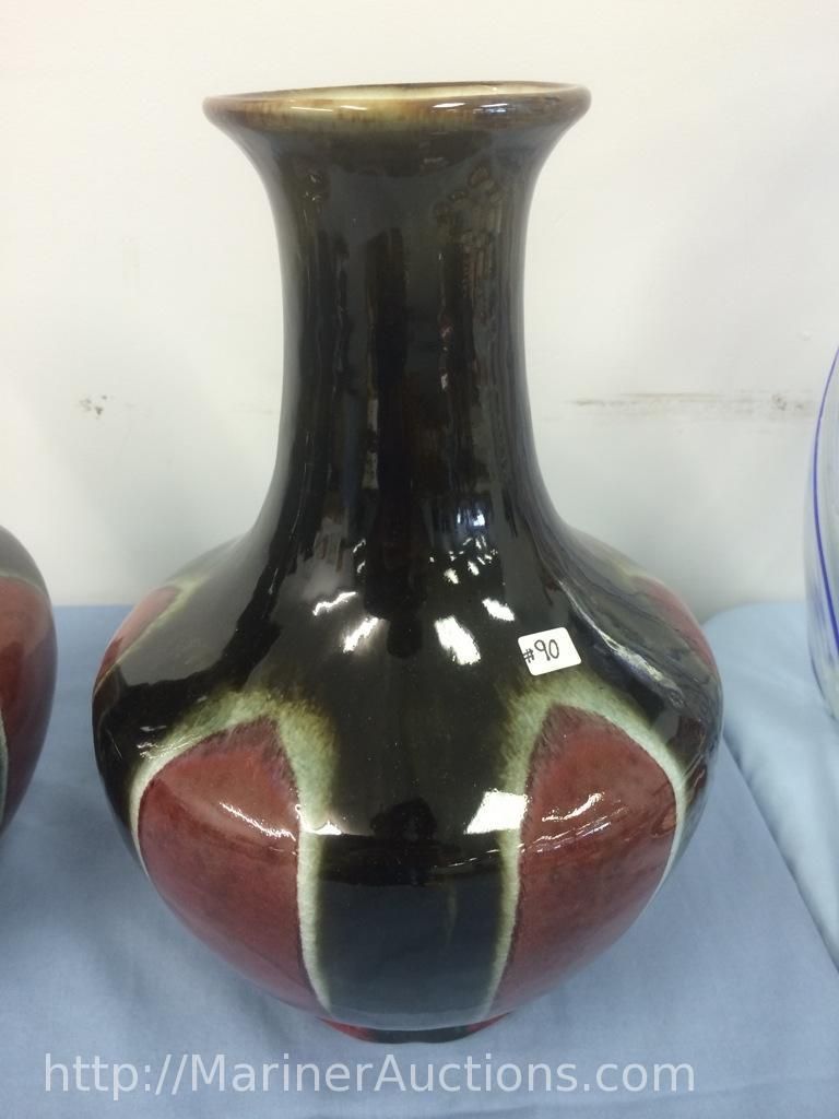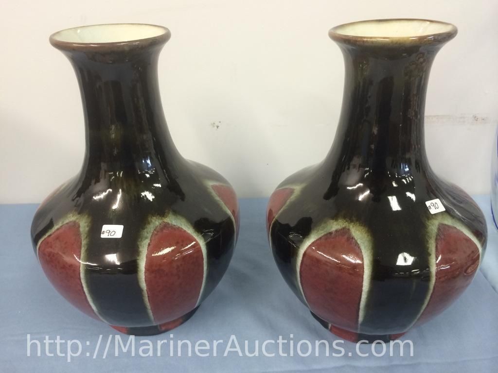 Pair of Large Heavy Hand Crafted Pottery Vases (12" high)
