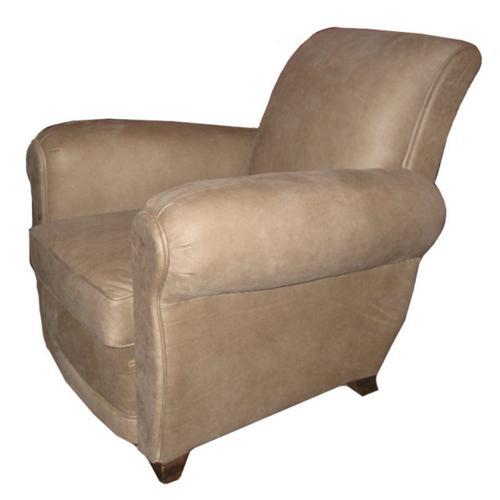 A wonderful pair of French Art Deco period club chairs upholstered in supple taupe leather.</em></td>