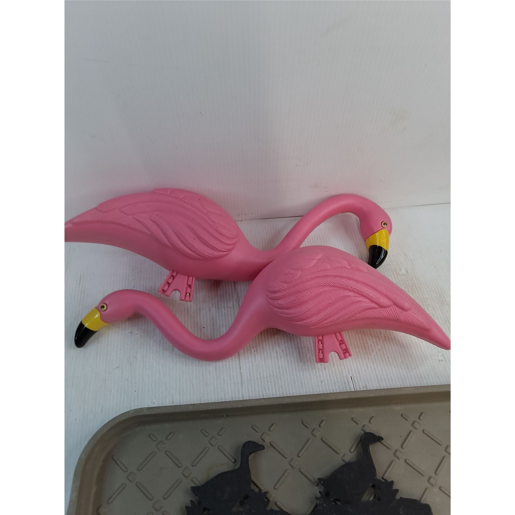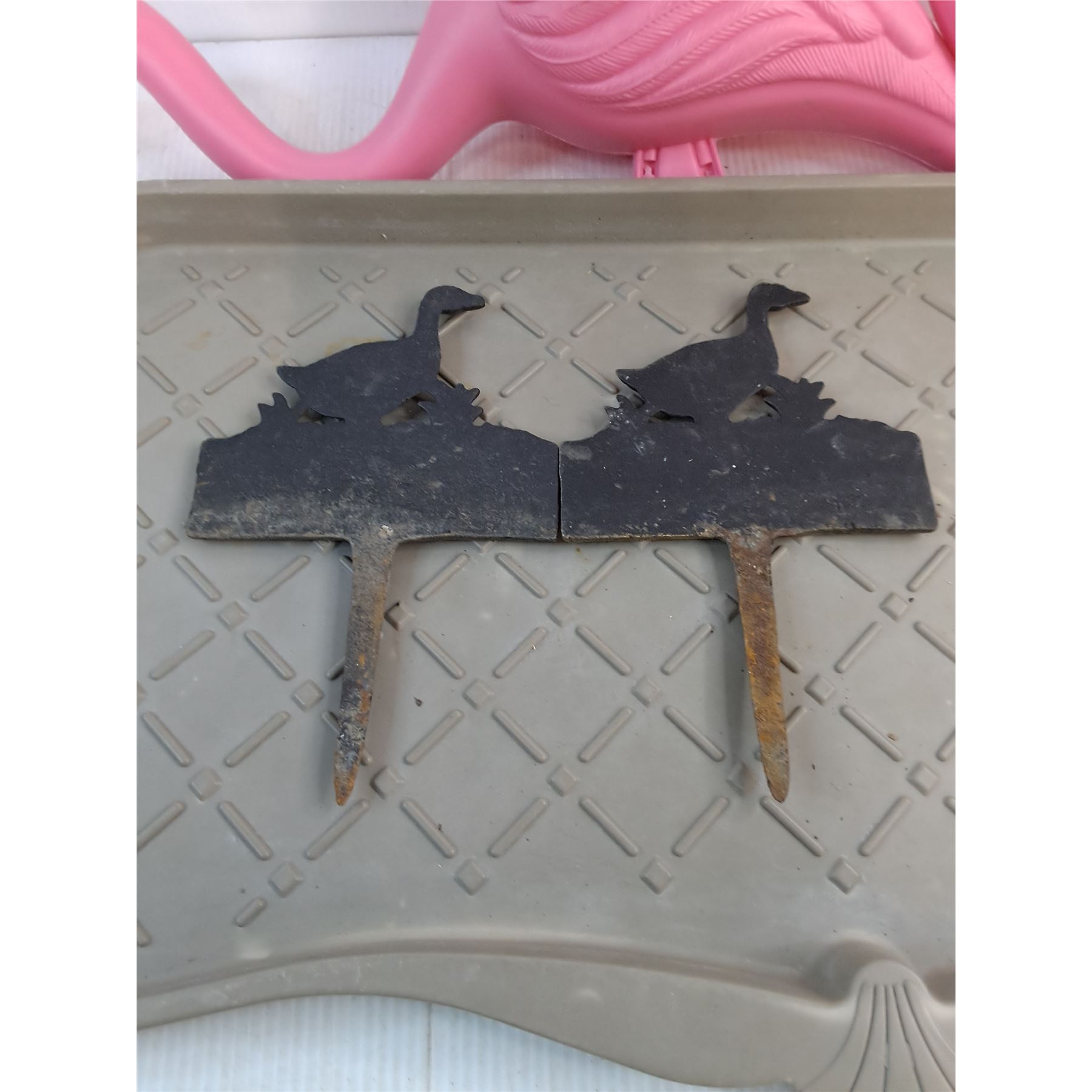 Pair of Legless Lawn Flamingos, Boot Tray, Lawn Mount Welcome Signs, NIB Solar light Clips