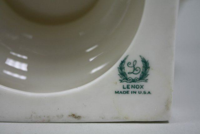 One stamped, Lenox, Made in USA. Approx. 7" H. Good condition.