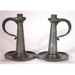 Pair of Liberty's pewter single handled candlesticks, impressed Tudric and 02490 to bases, 22cm high