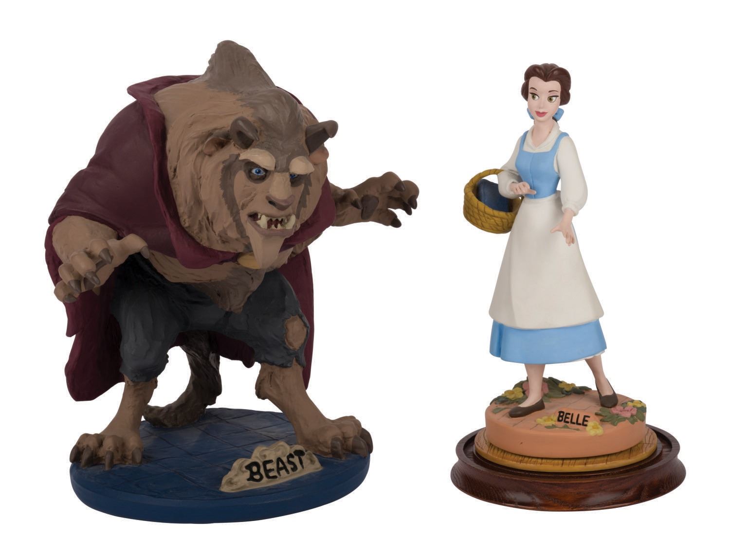 (Disney, 1993) A pair of Limited Edition Animator's Maquettes produced by Walt Disney Art Editions. Taken from the original maquettes sculpted by Ruben Procopio, each maquette was produced in an edition size of 500 pieces. This pair are both numbered 242/500. Belle measures a total 11.25" tall atop a 4.25" base, while Beast measures 12.25" tall and 12" at his widest atop an 8.25" base. Both are in fine condition.