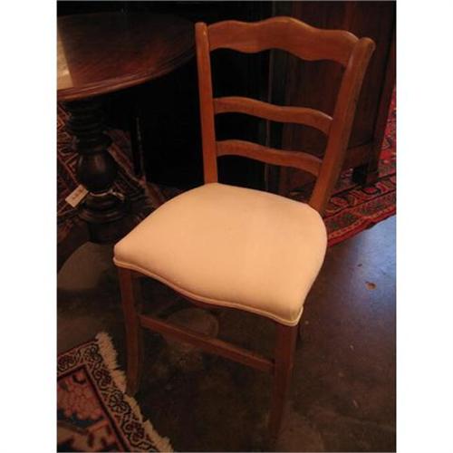 Pair of turn-of-the-century Louis XV style farm chairs in solid cherry wood with white muslin-covered seats, from Provence.