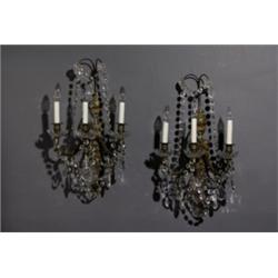 Pair of Louis XV Style Ormolu and Cut-Glass Three-Light Bras de LumiFre