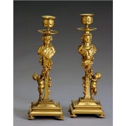 Each standard cast in the form of a term flanked by a putto. Each stamped VP below a crown.