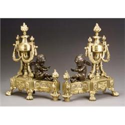 Pair of Louis XVI Style Ormolu and Bronze Figural Chenets