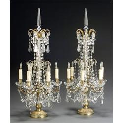 Pair of Louis XVI Style Ormolu and Cut Glass Six- Light Candelabra