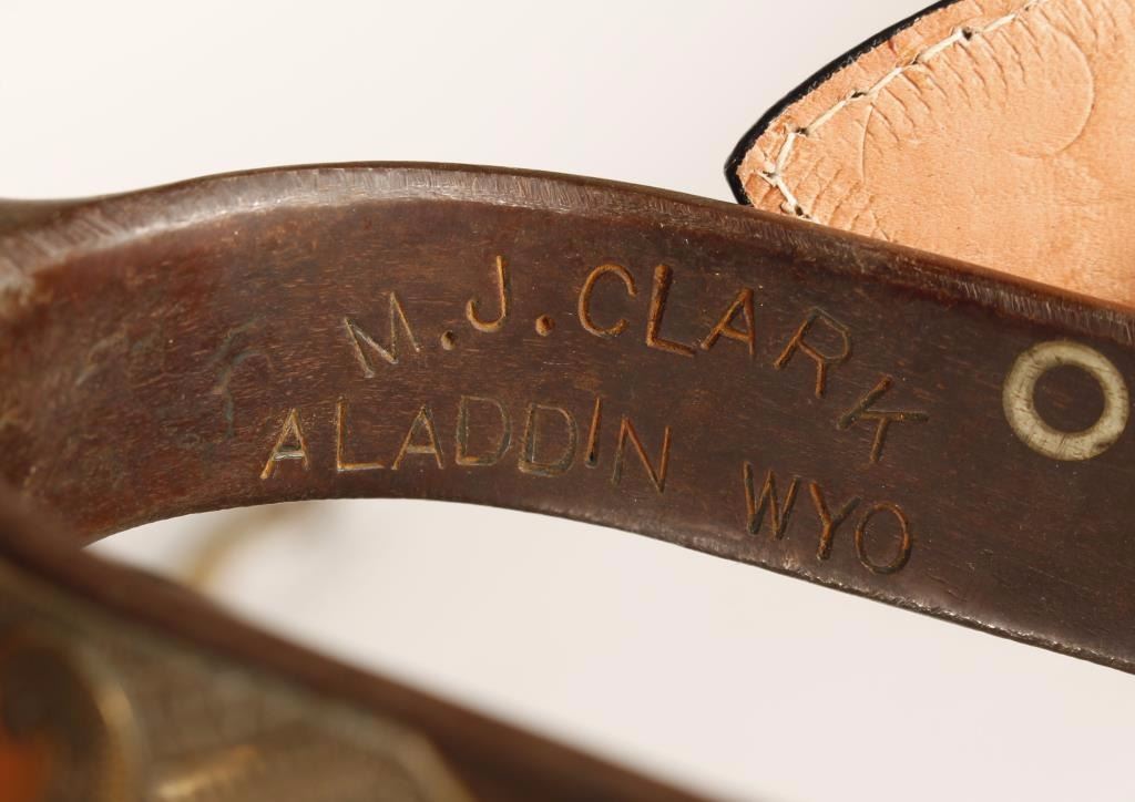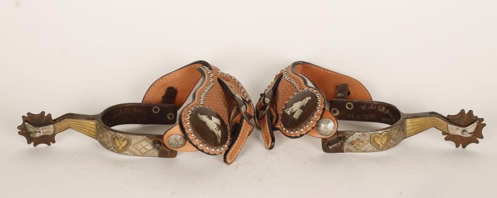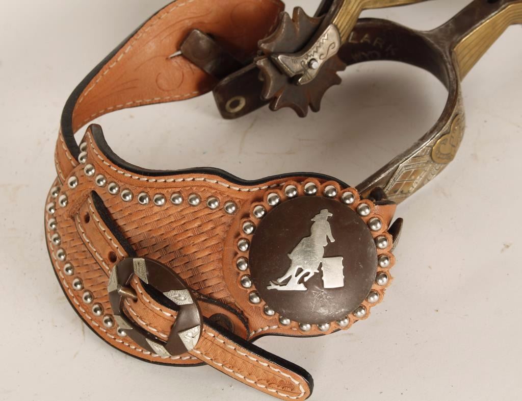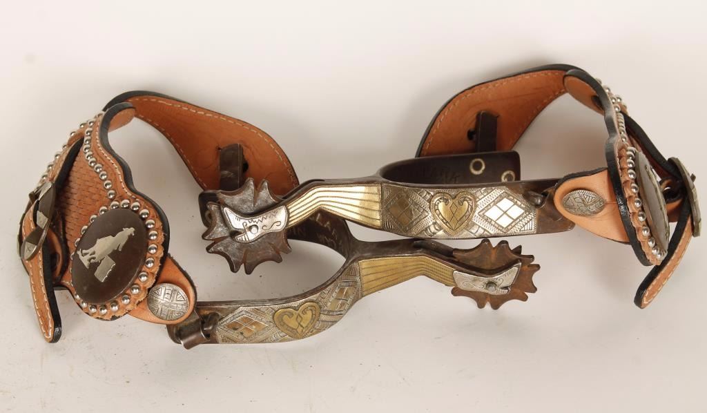 of Aladdin WY, contemporary silver mounted straps, brass and sterling gal legs, swinging buttons, in very good condition.