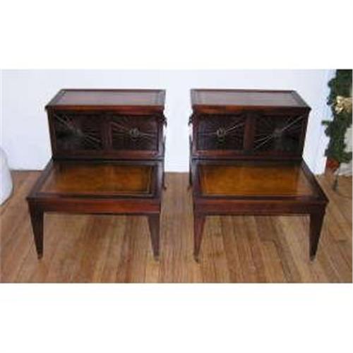 <tr><td>Title:Pair of Mahogany Leather Top Step-Back End</td></tr>