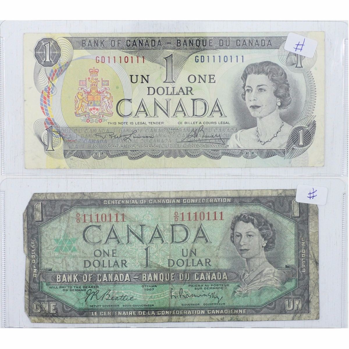 Pair of Matching 2 Digit RADAR $1.00 Notes in Fine or Better condition. The notes have serial number 1110111