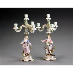 Pair of Meissen Figural Four-Light Candelabra of a Lady and Gentleman