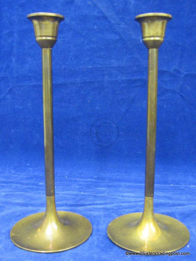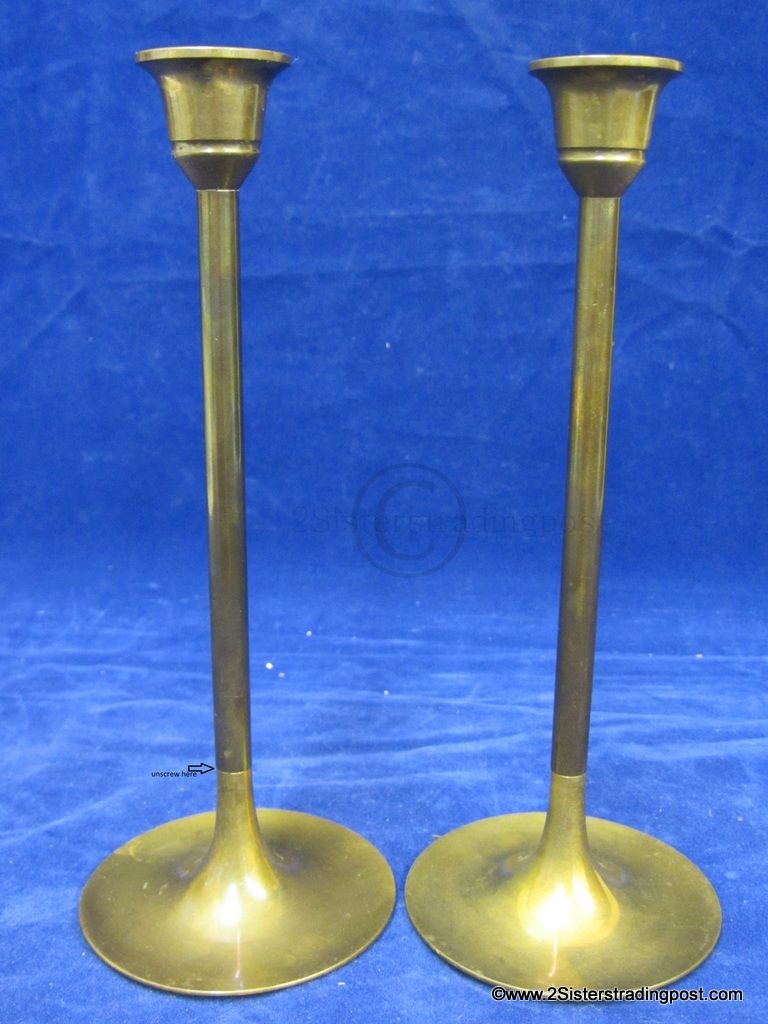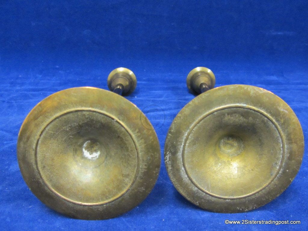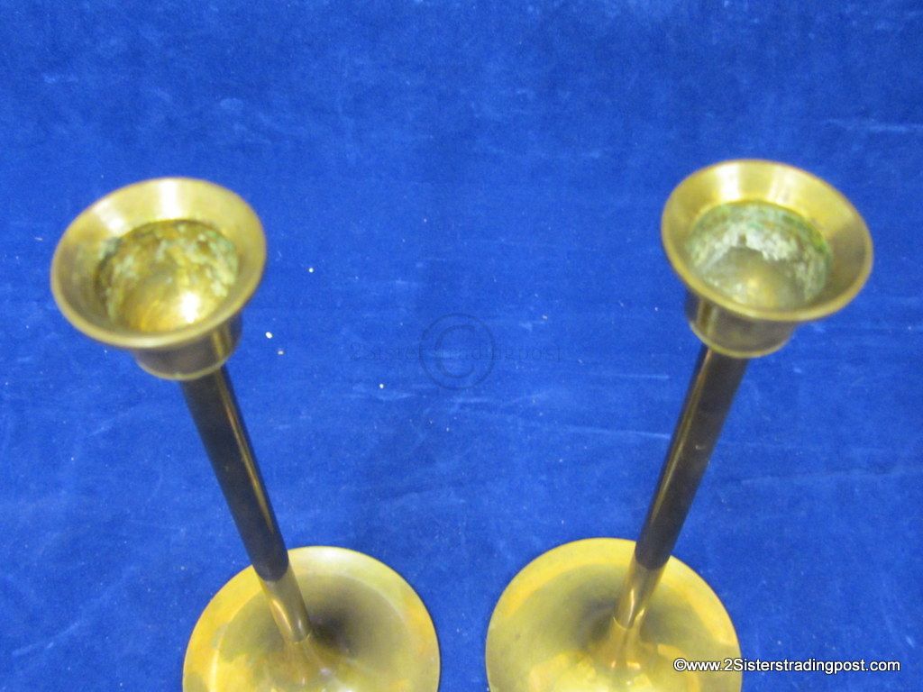 One pair of two tone brass candlesticks in very nice used condition. Candlesticks are 7" tall with a base of 2 3/4"