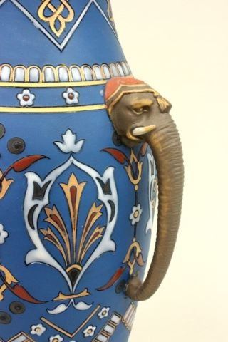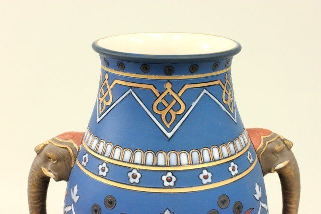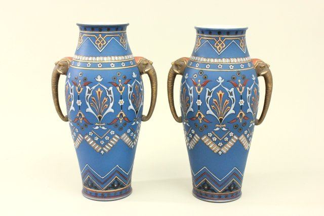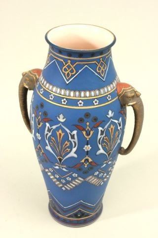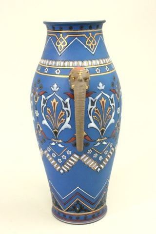 Unglazed. Porcelain elephant handles. #1870. Approx. 14" H. From a NYC collector's 40 year compilation. (4086.14) One repaired.