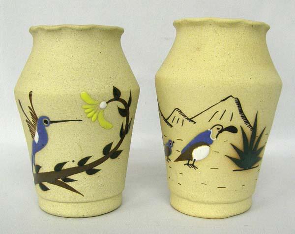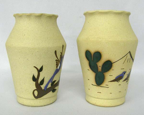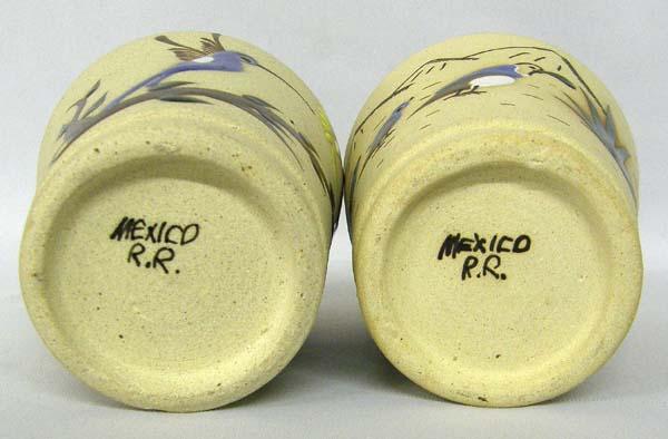 Pair of Mexican Pottery Vases Hallmarked R.R. Measures approx. 6''Hx4''W. Buyers Pay Actual Shipping and Handling Charges(see terms and conditions for more information).