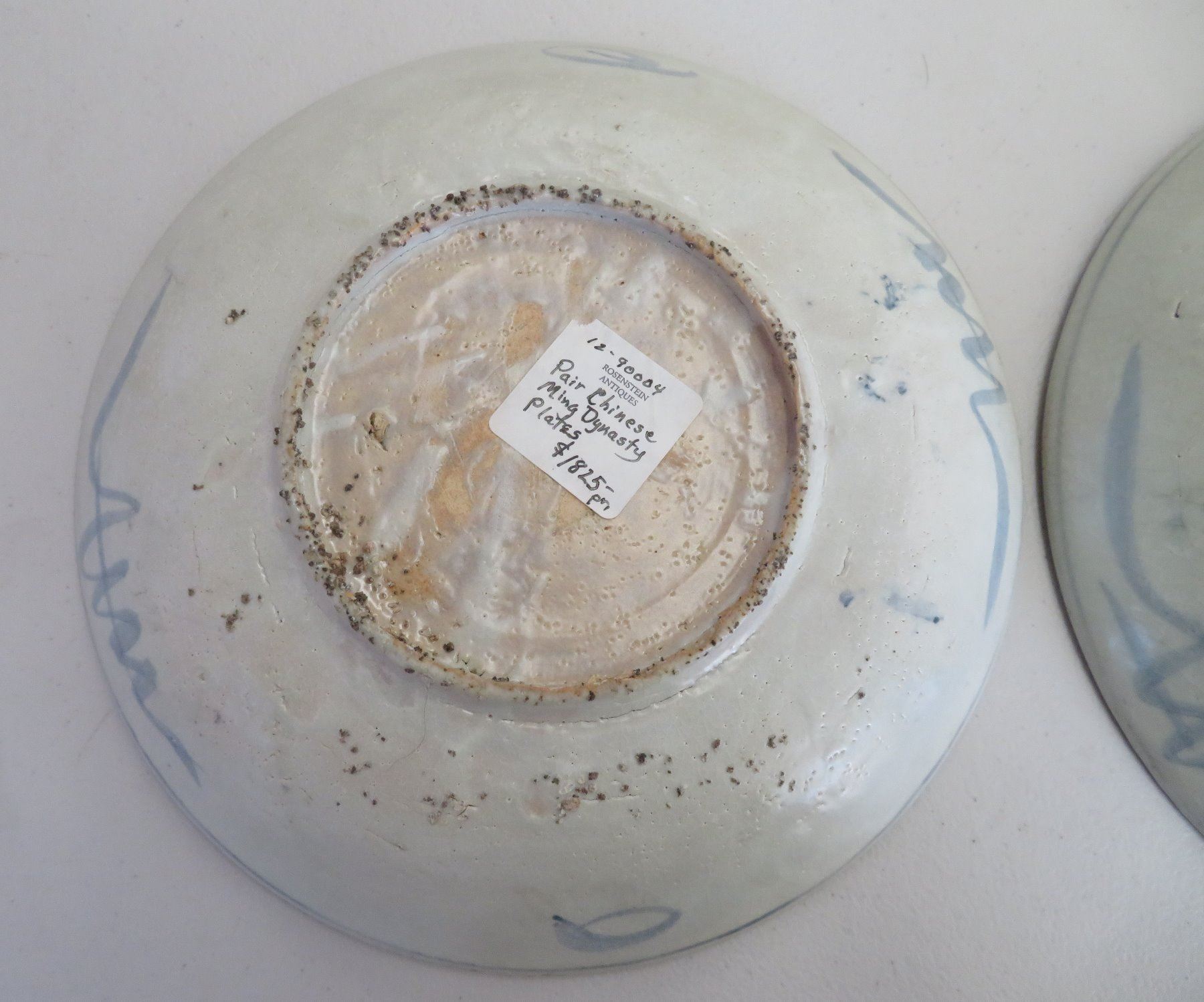 Pair of Ming Dynasty Plates, Ming Dynasty. Made of porcelain, the item measures 10" x 2". Chinese. Condition: Good, minor wear, see images. Shipping: $45.00 USA estimate only, double-boxed, w/insurance and signature.