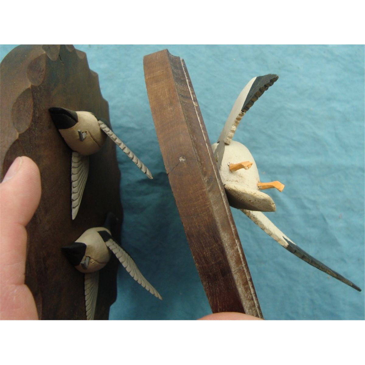 Pair of blue bills & a snow goose. Hand carved. Each is approx. 6 1/2" in diameter.