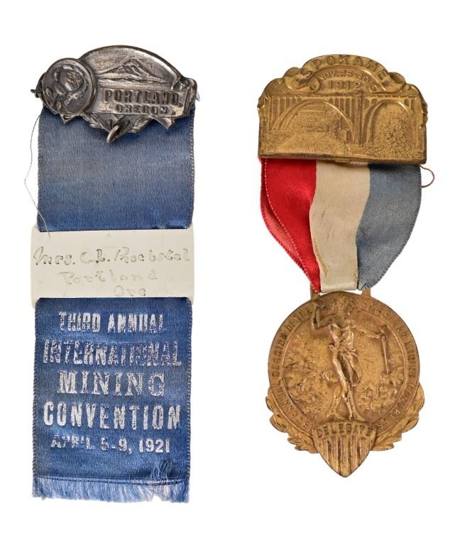 1912 Spokane Mining Congress Delegate Medal and 1921 Portland, Oregon Third Annual International Mining Convention Name Tag Ribbon