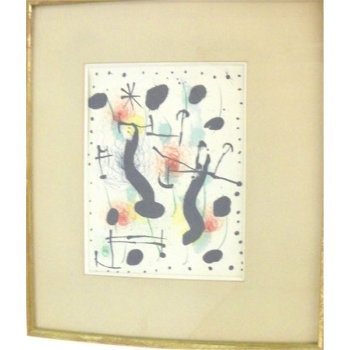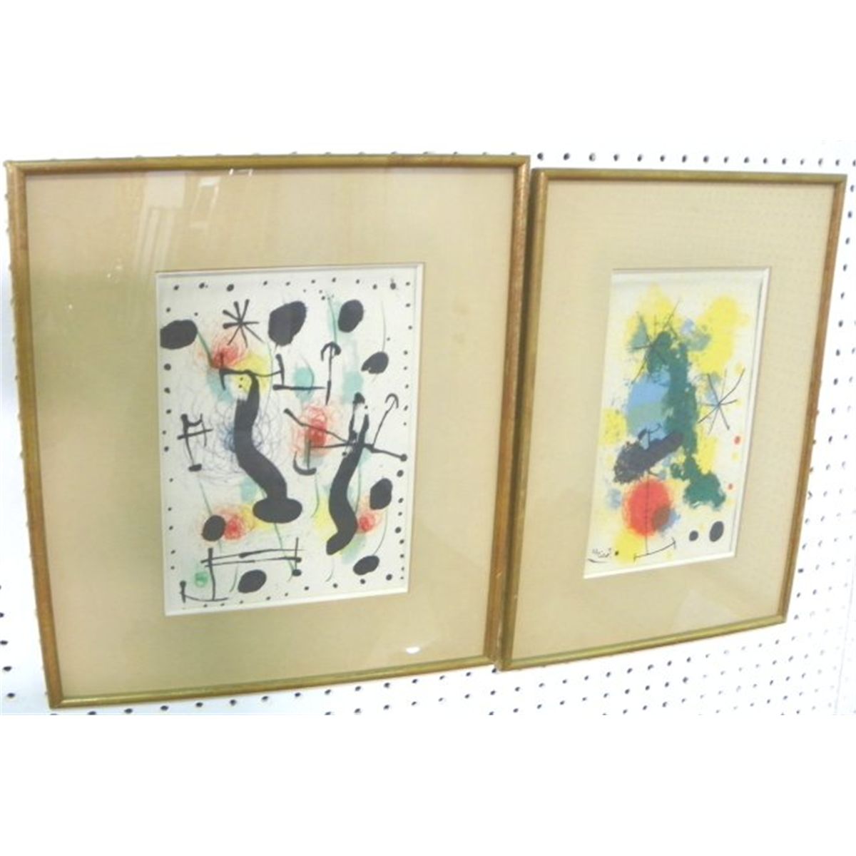Joan Miro (1893-1983 Spain) Two colored lithographs, both 9 1/2" x 7" sight size, one signed in the plate, both framed 16" x 14" Please read our terms of sale.