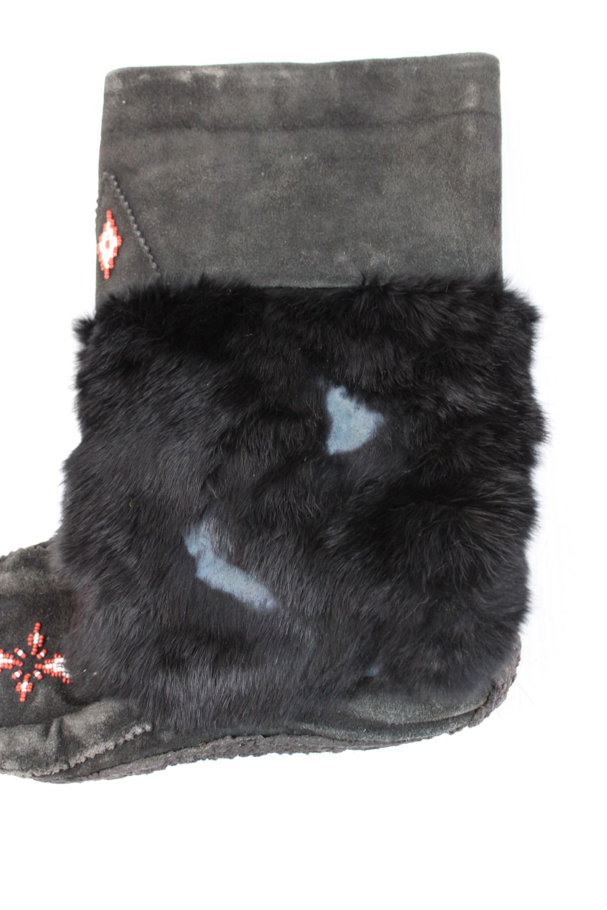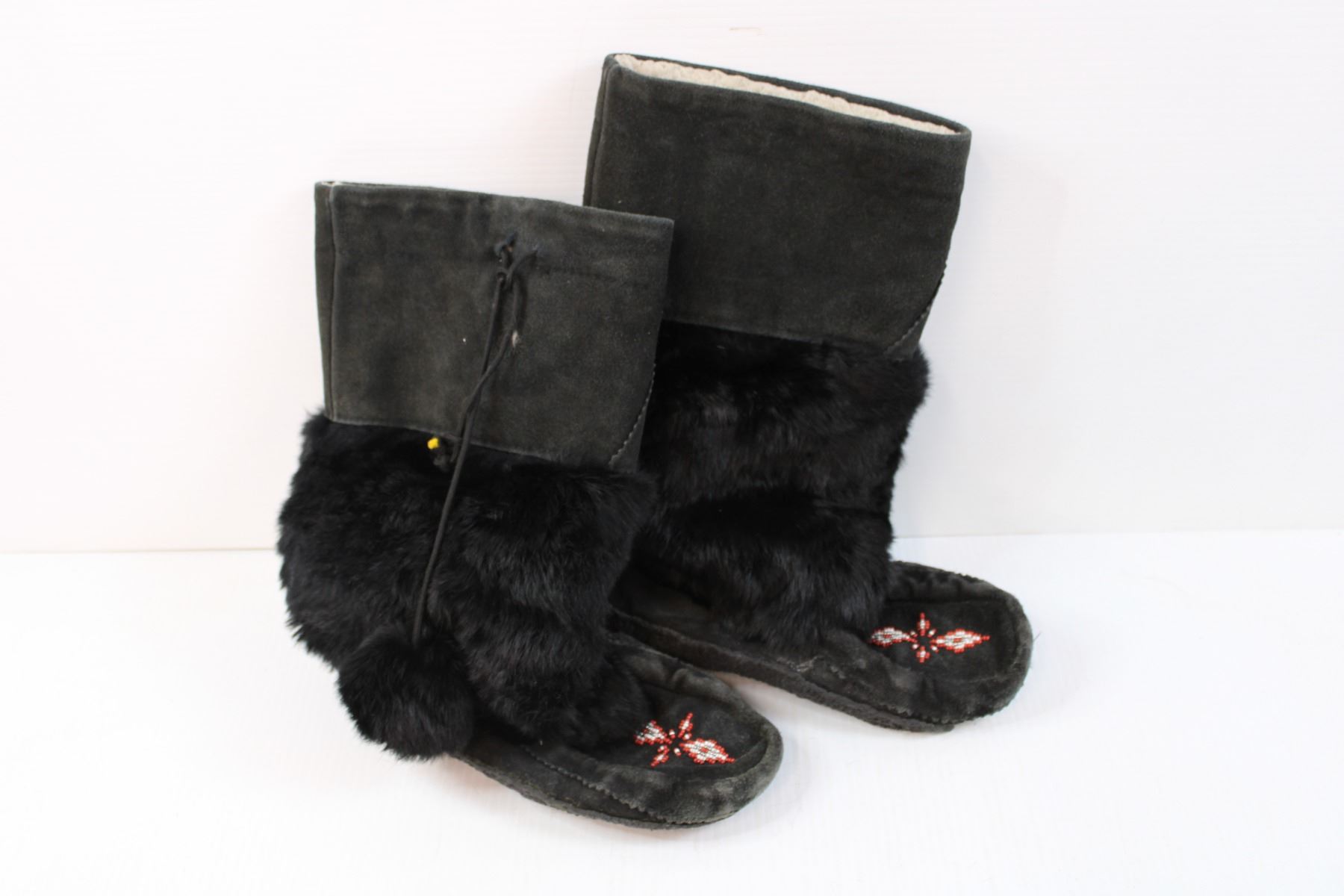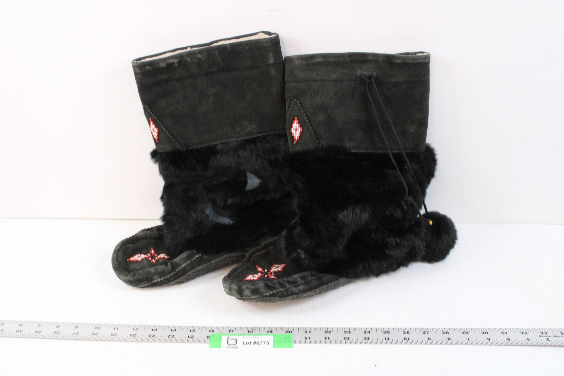 Pair of Mukluks, Rubber Soles, Some Wear, Missing One Pom Pom